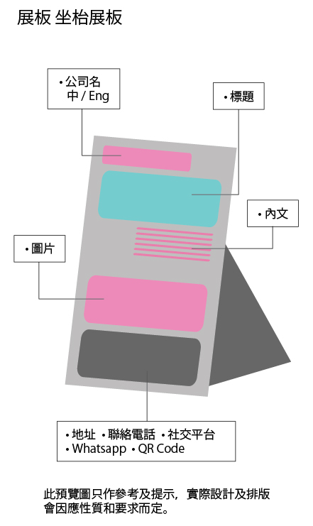 | 海報、易拉架、燈片、展板、橫額 | 120 - 300dpi | 30 mb | jpg, psd, tiff, png, ai | doc, ppt, xls, txt |